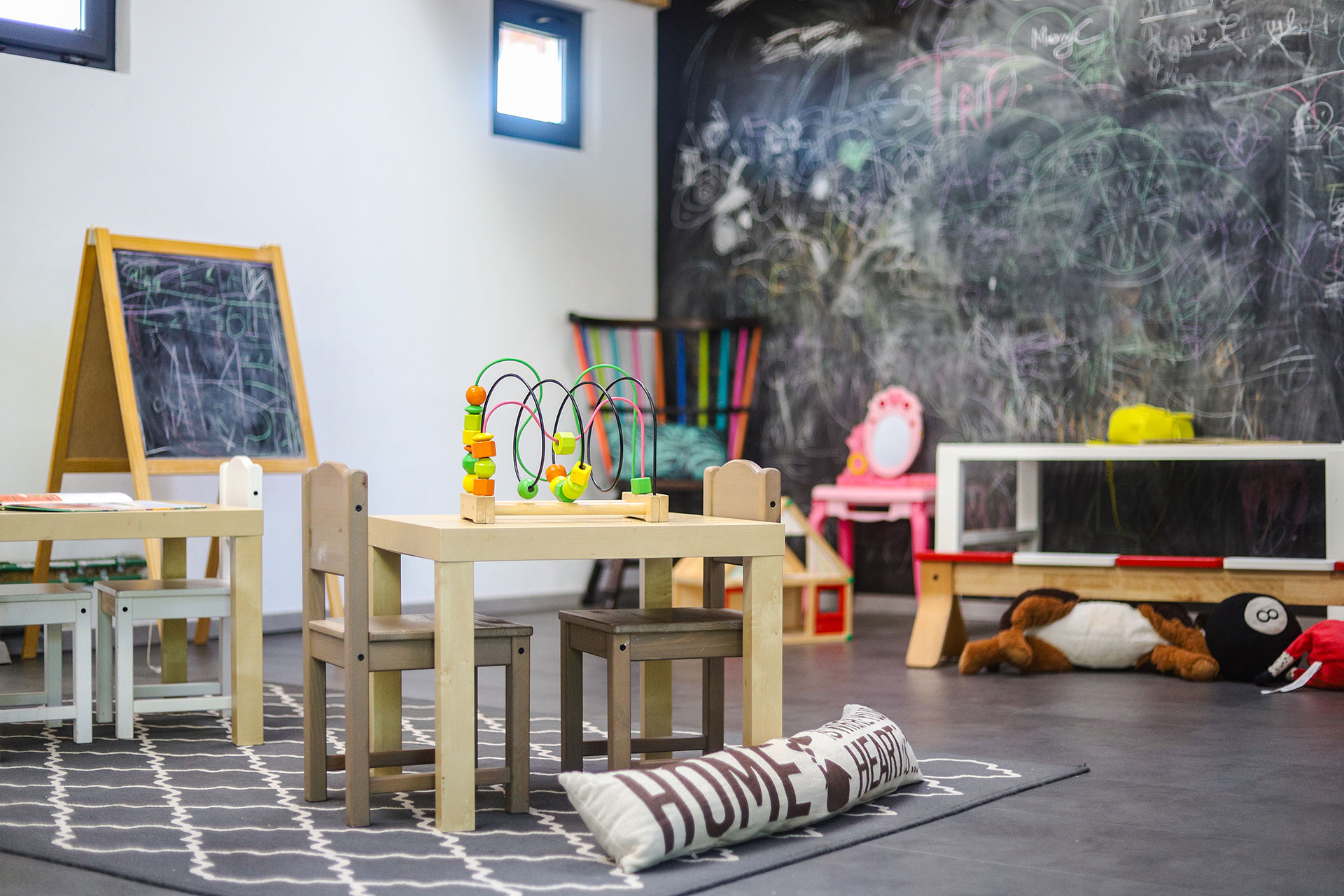 Spațiul a fost special gândit pentru a le oferi celor mici cât mai multe zone de activități, în funcție de vârstă și interese: